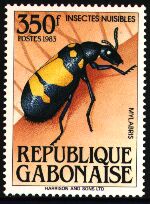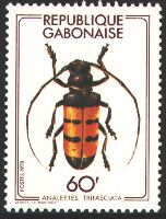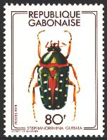 Insect Stamp of GabonIn Gabon, most of a country at the same size as Japan are covered in a dense forest in a country right on the equator. It became a French protectorate in 1842 and became a part of French Equatorial Africa in 1910. It became self-government Republic in a French community in 1958 and achieved independence in 1960. In an oil-producing country, It is blessed with mining production resources such as uranium, manganese and produce wood.