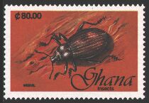 Insect Stamp of Republic of GhanaTo Ghana, a European mainly Portuguese is come to do slave trade such as gold or ivory since the 15th century. Ghana become a colony of British by the 19th century. Founding Fathers "Nkrumah" is becoming serious by independence movement in 1949 , merge Togo land and achieve independence in 1957. Ghana shifted to republican form of government to assume Nkrumah as a president. However, president Nkrumah lost its position by a military coup d'etat of 1966, and coup d'etat occurred successively afterwards. In 1992 a presidential election is performed, and Rawlings takes office as the president and thereafter election by plural political parties was performed, and democratization was firmly established.