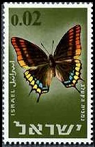 A stamp of four kinds of butterflies was issued in 1965 by this Israel. A child and herbaceous plant was drawn on a tab.