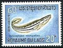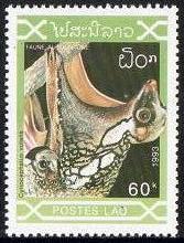 Four kinds of fish stamps were issued in 1967 by this Laos. Five kinds of animal stamps were issued in 1993.