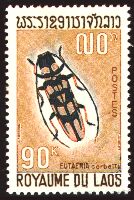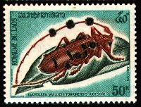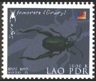 The stamp which drew eight kinds of beetles of Southeast Asia in commemoration of the international stamp exhibition held in 2002 in Laos was issued.