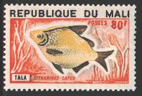 A splendid stamp of the intaglio print on which drew the fish of the African special product for 1975 years and 1976 years was issued by five kinds of each. A color was bright and became the one of the favorites.