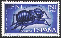 Insect stamps were issued from Spanish Sahara in 1964 and 1965. Although they are monochrome, they are beautifully depicted ecologically.