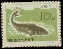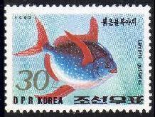 Five kinds of fish stamps were issued in 1966 by this North Korea. Five kinds of fish stamps was issued in 1993.