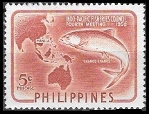 4th Meeting of India Pacific fisheries board of directors Stamp on which it drew milkfish of Gonorhynchiformes in 1952, two kinds of design different colors were published by these Philippines.