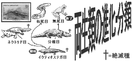黒色の「両生類名」をマウスでクリックすると、両生類切手が表示されます。