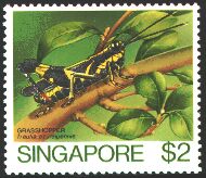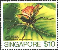 12 kinds of normal stamps which it drew the insect from Singapore were issued in 1985. The insect of a specialty is ecologically drawn on Singapore, such as Men's face shield-backed bug and potter wasp, and it was set to one of the favorite stamps. It consists of eight kinds of a small amount, and four kinds of a large amount.