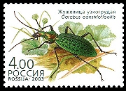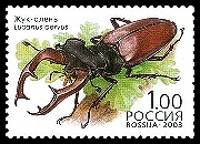 The small sheet of five kinds of stamps describing Metalic Beetle and Stag Beetle of the Russia specialty was issued in 2003.