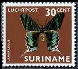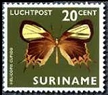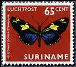 The normal stamp which drew butterfly of the South America specialty from this Surinam was issued in 1972.