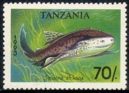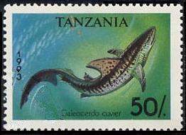 Six kinds of stamps on which it drew a shark and small seat one piece were issued in 1993 by this Tanzania.
