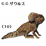 Triceratops of Ceratopia which prospered in the Cretaceous of the end of the Mesozoic was the large-sized herbivory dinosaur that length 7.5m, the weight reached 8.5ton. The circumference of the neck was protected by a shield made by a thick bone and had a corner of two a little less than 1m in length on a nose in the triangular corner one which had a short it, the upper part of eyes. Tyrannosaurus of Theropoda is going to kick Triceratops in terrible hind legs to death when Tyrannosaurus found Triceratops eating bait leisurely at a grassy plain in. Triceratops turns for a counterattack fiercely. Tyrannosaurus founds a big mouth and, in a start, threatens a partner and gives it. At the moment when the defenseless abdomen cropped out, it right become the arrival in a life-threatening chance rushing for of Triceratops. It edge back, and point out acceleration, and stick out of the abdomen of Tyrannosaurus in a sharp corner decisively and it break skin and rummage in the internal organs badly. Putrid flesh in the bowels begins to spill in an abdominal cavity and suffers from terrible peritonitis and is to die in agony. Triceratops leaves to the house of Katsutoshi in a grand manner while dropping blood from sharp square of the head.