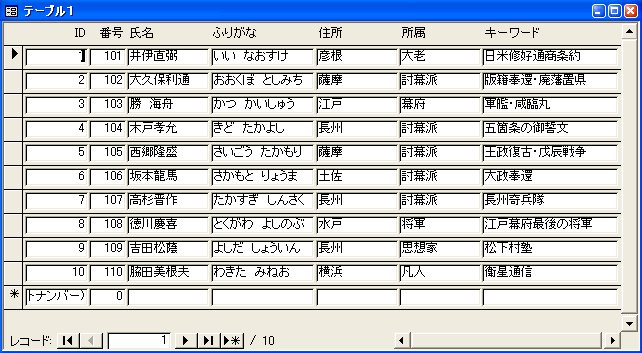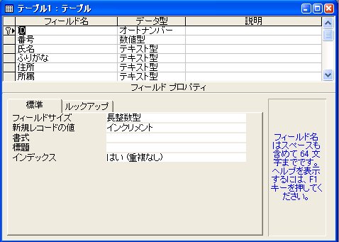 (注)「ID」という項目のフィールドはオートナンバー型のフィールドで、