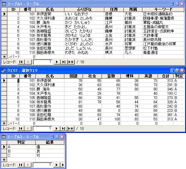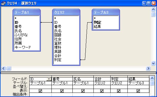 フィールドに、テーブル3では判定のフィールドに設定してある。