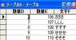 '新規: acctest3.mdb, テーブル5, 数値D, 数値E, 文字F