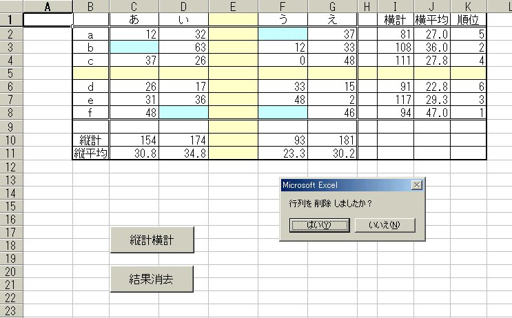 If MsgBox("行列を 削除 しましたか?", 4) = vbYes Then