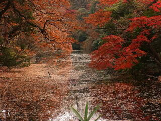 まだ,ところどころ紅葉が残る森の中。道は落ち葉でいっぱい。それを林苑担当の方が集めて,森に返しています。捨てればゴミ,森に返せば大切な土になってくれます。