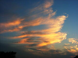 こんなふうに,部分的に色がつくこともあります。 彩雲の発生条件はデリケート。 みるみる色がついたり消えたりします。 それはまるで,オーロラにも似た,はかなさ…。 |