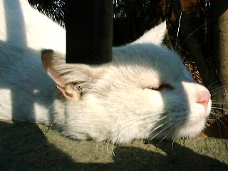 「久しぶり」 2000/10 宿舎でたたずんでいるところを見つけました。なでられて嬉しそうだったんですが、全体的に少し警戒気味でした。う〜ん。半分忘れられているらしいです。(^^;