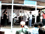 関西では、6月15日(日)に交流の家フェスティバルがありました。 今回は、フルートアンサンブルの方達が来て下さいました。とても、上手でした。そ の後色々なお話とかがあって、皆さん個人の芸を披露されていました。多芸な人が多い ですね(西村麻里)。 |
