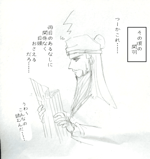 くだらない話しはしたくないらしい。夏侯惇は関羽の台詞には応えずに、また書物に目を戻した。