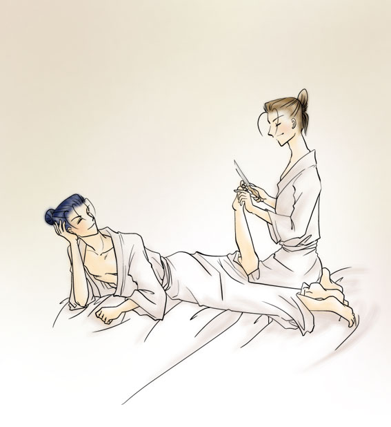 これは呂蒙に爪を削ってもらってる甘寧さんです。