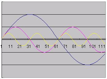 You can see three waves in the figure below. The bigger the cycle of the wave