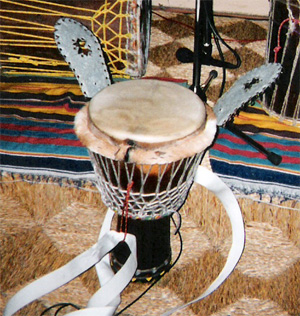 アフリカを代表する打楽器です。木をくりぬいて、動物の皮を張ったドラムで、素手で叩いて演奏します。