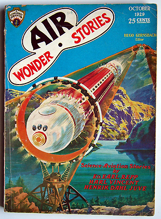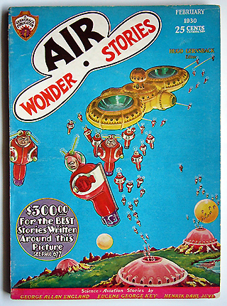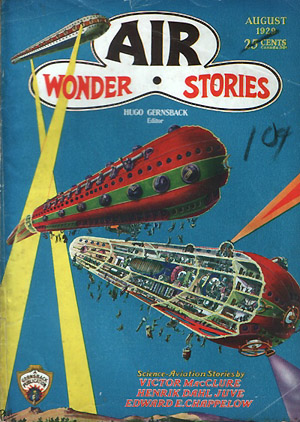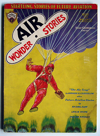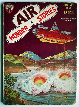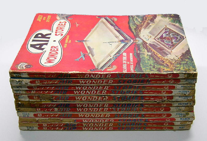 ガーンズバックがAMAZINGを手放した後、創刊した2誌が、SCIENCE WONDER STORIESとこのAIR WONDERSTORIES。 1929年7月から1930年5月号まで11冊を出したところで、両誌は合併し6月号よりWONDER STORIESとなります。すべてPAULによる表紙です。