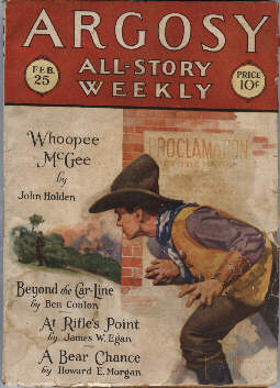 ARGOSYは長編連載開始の号の表紙にその作品を使い、作品名と作者を明記しました。これは人気作家であったバローズの作品でも例外ではありません。 6回連載なら、連載開始の号だけが表紙絵になっています。SFコレクターとしてはせめてバローズほどのビッグネームにはもっと表紙絵にしてほしかったものです。(表紙絵になっている 号はなっていない号より高価です)