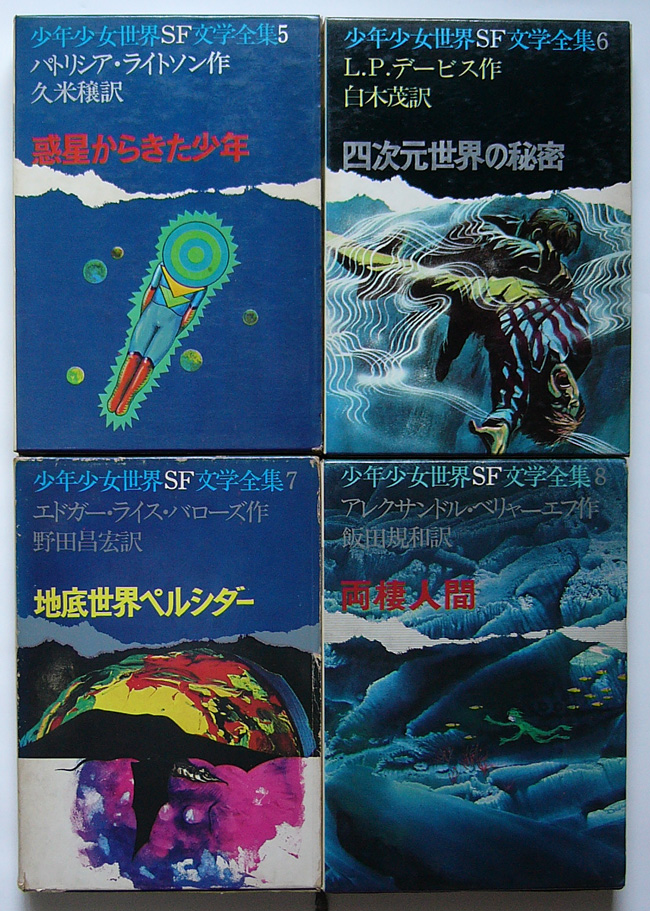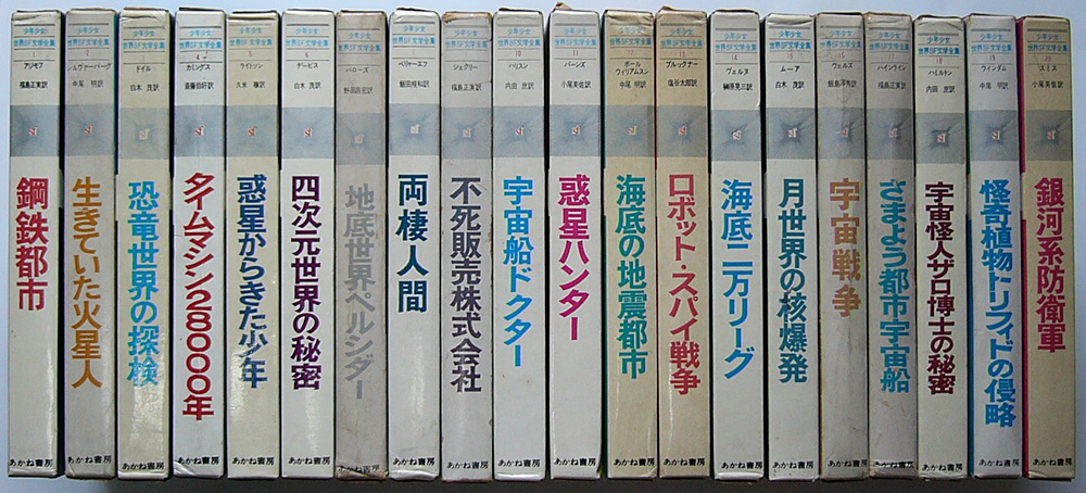巻 書名 著者 発行 表紙 1 鋼鉄都市 アイザック・アシモフ 71/7 篠原勝之 2 生きていた火星人 ロバート・シルヴァーバーグ 71/7 松永謙一 3 恐竜世界の探検 コナン・ドイル 71/7 旭丘光志 4 タイムマシン28000年 レイ・カミングス 71/8 新井苑子 5 惑星からきた少年 ライトソン 71/11 杉本一文 6 四次元世界の秘密 L・P・デービス 71/11 山本輝也 7 地底世界ペルシダー E・R・バローズ 71/12 上矢津 8 両棲人間 A・ベリャーエフ 71/12 池田龍雄 9 不死販売株式会社 R・シェクリー 72/1 中山正美 10 宇宙船ドクター ハリー・ハリスン 72/3 依光隆 11 惑星ハンター A・K・バーンズ 72/3 金森達 12 海底の地震都市 F・ポール/J・ウィリアムス 72/5 沢田弘 13 ロボット・スパイ戦争 カール・ブルックナー 72/5 楢喜八 14 海底二万リーグ ジュール・ヴェルヌ 72/6 佐竹政夫 15 月世界の核爆発 パトリック・ムア 72/7 篠原勝之 16 宇宙戦争 H・G・ウェルズ 72/10 太田大八 17 さまよう都市宇宙船 ロバート・A・ハインライン 72/12 武部本一郎 18 宇宙怪人ザロ博士の秘密 エドモンド・ハミルトン 73/2 金森達 19 怪奇植物トリフィドの侵略 ジョン・ウィンダム 73/3 池田龍雄 20 銀河系防衛軍 エドワード・E・スミス 73/4 沢田弘