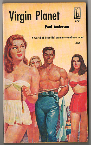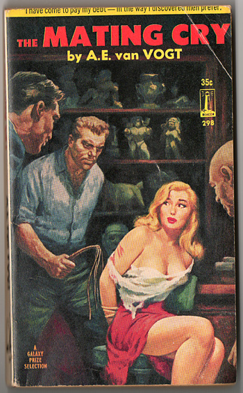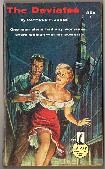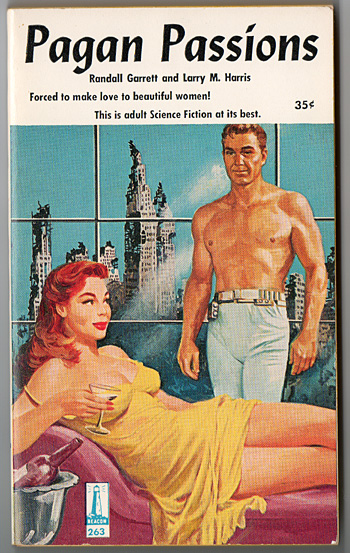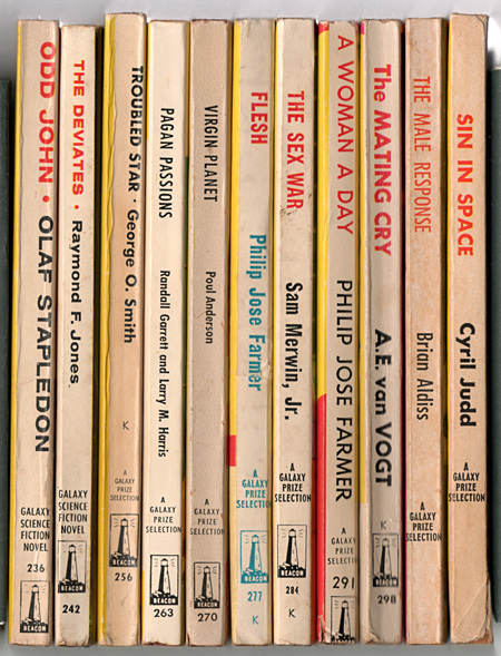 GALAXY SCIENCE FICTION NOVELSは、1950年に本誌と同じ体裁(ダイジェストサイズ)で発行されたものですが、雑誌ではなく、ペーパーバックに分類され、中にイラストは入っていません。 1巻から31巻まではダイジェストサイズ、32巻からは普通のペーパーバックサイズで出版されました。どういう理由かわかりませんが、1959年36巻からは、お色気小説の叢書である『Beacon Books』に出版社を変え、最初の2冊はGALAXY SCIENCE FICTION NOVELSで、残りはGALAXY PRIZE SELECTIONとして1961年46巻まで「すごく色っぽい表紙」で発行されました。表紙を見ただけでは普通のお色気小説としか思えません。