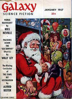 エムシュの有名な4本腕のサンタクロース。1951年12月号に初めて登場、 最初は毎年続けるつもりはなかったのでしょう、翌年の12月号には登場しません。 が53年から毎年「SEASON'S GREETINGS TO OUR READERS」として登場、 エムシュらしいディテェールに凝った、物語性のある楽しい絵で、 10年間毎年楽しみしていた読者も多かったでしょうね。 3回目までは12月号だったんですが、5年目からは1月号に変更になりました。 これは、1955年の12月号は発行されなかったからで、この年から1月号にずれたためです。 私が一番気に入っているのは1953年ですが、みなさんはどうですが。 | ![]() |