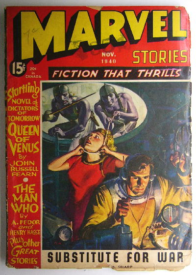 この2冊は、シリーズの中でも高価な本ですが、特に40年11月号は前号と1,2を争う高価な本です。その理由は、知らない人には何のことかわからないと思いますが、「JOE SIMON & JACK KIRBY による HUMAN TORCH」のコミックが1ページ掲載されており、コミック蒐集家の蒐集の対象になっているためで、非常に高値で取引されています。