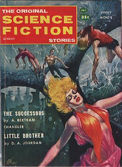 1953年から1960年まで計38冊発行のダイジェストサイズのSF雑誌。SCIENCE FICTION STORIESのタイトルで 53年54年と単発で出た後、55年1月から隔月で発行、9月号(累計で7号)からTHE ORIGINAL SCIENCE FICTION STORIESに タイトル変更。表紙はEMSHが一番多く、次がFREAS、というよりこの2人でほとんど描いている。最後の方は資金繰りの 関係か、過去のイラストをモノクロで表紙に使用し、そのまま廃刊へ。