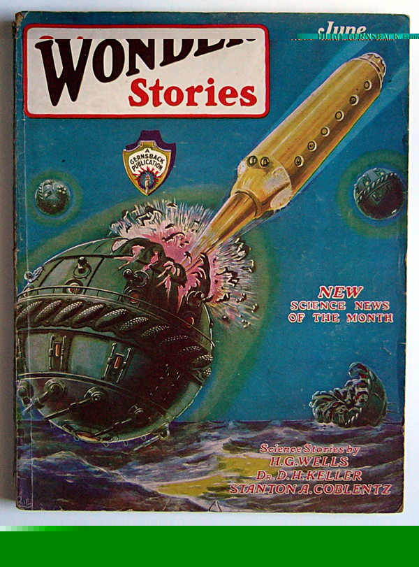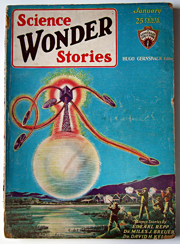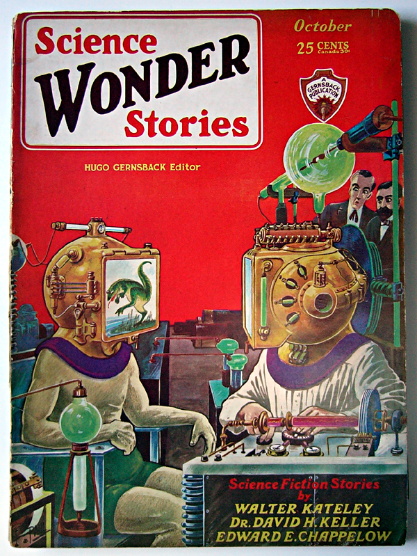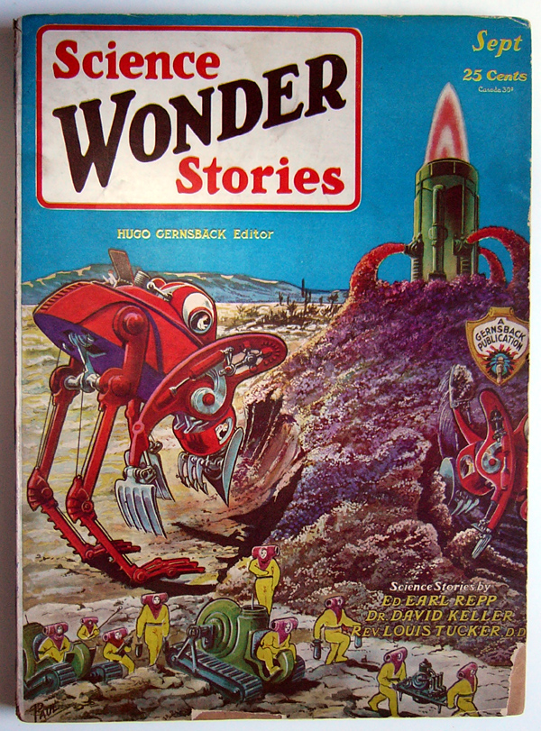 ガーンズバックがAMAZINGを手放した後、創刊した2誌が、AIR WONDER STORIESと、このSCIENCE WONDER STORIES。 1929年6月号から1930年5月号まで12冊を出したところで、両誌は合併し6月号よりWONDER STORIESとなります。すべてPAULによる表紙です。