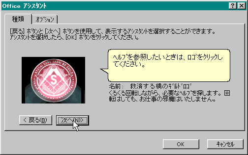 〜コメント〜 Microsoftのオフィスシリーズに付いてるんですよ、 こういううざったいヘルプ機能が。 とりあえず、思いついた3パターンだけ。 全部使えません。