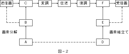 (5)図−2は、ファクシミリの基本過程を示したものである。図中のDからFまでの過程は、( オ )である。