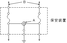 (1)図は、最寄りの電柱等から電気通信回線を家屋に引き込む場合に一般に使用する保安装置の構成と接続形態を示したものである。図のAは(