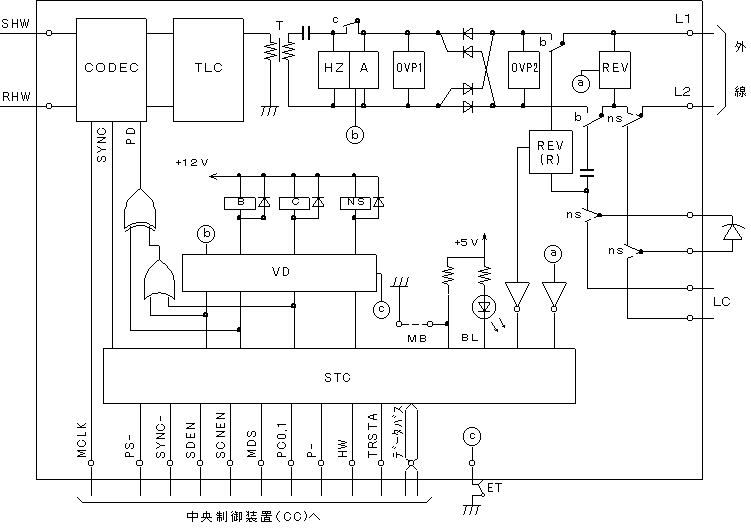 イ )からSTCを介して中央制御装置(CC)へ伝え、当該BWTを内線に対して閉そくする。続いて、外線から到来する16ヘルツ信号を(