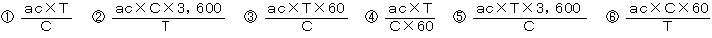 (4)ある回線群を時刻t1〜t2のT分間調査したところ、運んだ呼量がαcアーラン、運んだ呼数がC呼であった。この回線群が運んだ呼の平均回線保留時間は、(