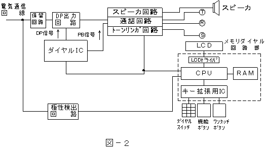 (5)図−2に示すメモリダイヤル電話機の回路構成において、メモリダイヤル機能を用いて発信する場合は、メモリから読み出した電話番号により(