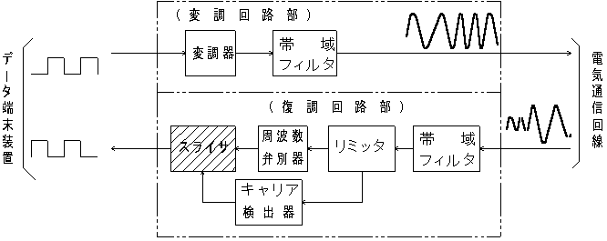 (3)一般に、データ端末装置を専用線に接続する場合、変復調機能だけを必要とするが、電話網に接続してデータ通信等を行う場合には、変復調機能と(