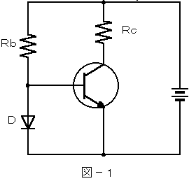 (2) 図−1に示すバイアス回路のトランジスタ回路では、温度が上昇するとトランジスタの特性が変化してコレクタ電流が増加しようとするが、温度補償用ダイオードDの順方向電圧が( イ )ので、コレクタ電流は一定に保たれる。