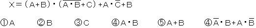 (2) 次の論理関数Xは、プール代数の公式等を利用して変形し、簡単にすると( イ )になる。
