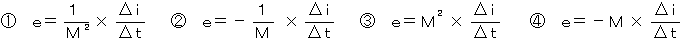 (3) コイルAを流れる電流がΔt秒間にΔiアンペアだけ変化したとき、コイルBに誘導される起電力eは、コイルA、B間の相互インダクタンスをMヘンリーとすれば、( ウ )の関係式で表される。