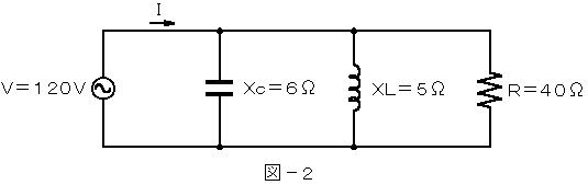 (2) 図−2に示す回路の力率(抵抗Rに流れる電流と全電流Iとの比)は、( イ )である。