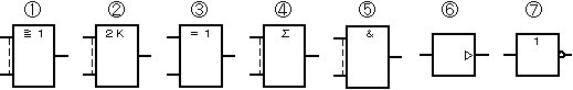 (1) JIS X 0122(2値論理素子図記号)において、排他的論理和(EOR)素子を表す図記号は、( ア )である。