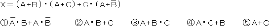 (2) 次の論理関数Xは、プール代数の公式等を利用して変形し、簡単にすると、( イ )になる。