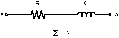 (2)図−2に示す回路において、端子a−b間に、60ボルトの直流電圧を加えたとき、5アンペアの電流が流れ、80ボルトの正弦波交流電圧を加えたとき、4アンペアの電流が流れた。このとき、回路の誘導性リアクタンスXLは、(