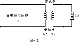 (2) 図−2において、電気通信回線のインピーダンスをZ1、負荷インピーダンスをZ2、変成器の一次側、二次側の巻線比をそれぞれ